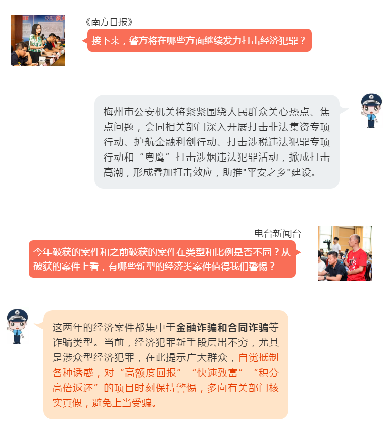 市公安局房春鳴副局長(zhǎng)在發(fā)布會(huì)上通報(bào),今年以來(lái),梅州市公安機(jī)關(guān)聚焦打擊主責(zé)主業(yè),扎實(shí)開(kāi)展護(hù)航金融“利劍2019”專(zhuān)項(xiàng)行動(dòng),始終將打擊鋒芒對(duì)準(zhǔn)非法集資、虛開(kāi)騙稅等突出經(jīng)濟(jì)犯罪,取得顯著戰(zhàn)果。