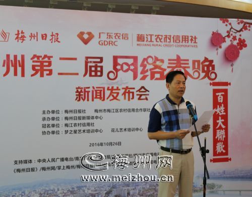 梅州日報社副總經(jīng)理梁庚介紹梅州第二屆網(wǎng)絡(luò)春晚大型活動情況