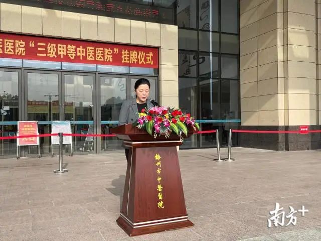 梅州市衛(wèi)健局局長林雨蘭宣布梅州市中醫(yī)醫(yī)院“三級甲等中醫(yī)醫(yī)院”批復(fù)文件。