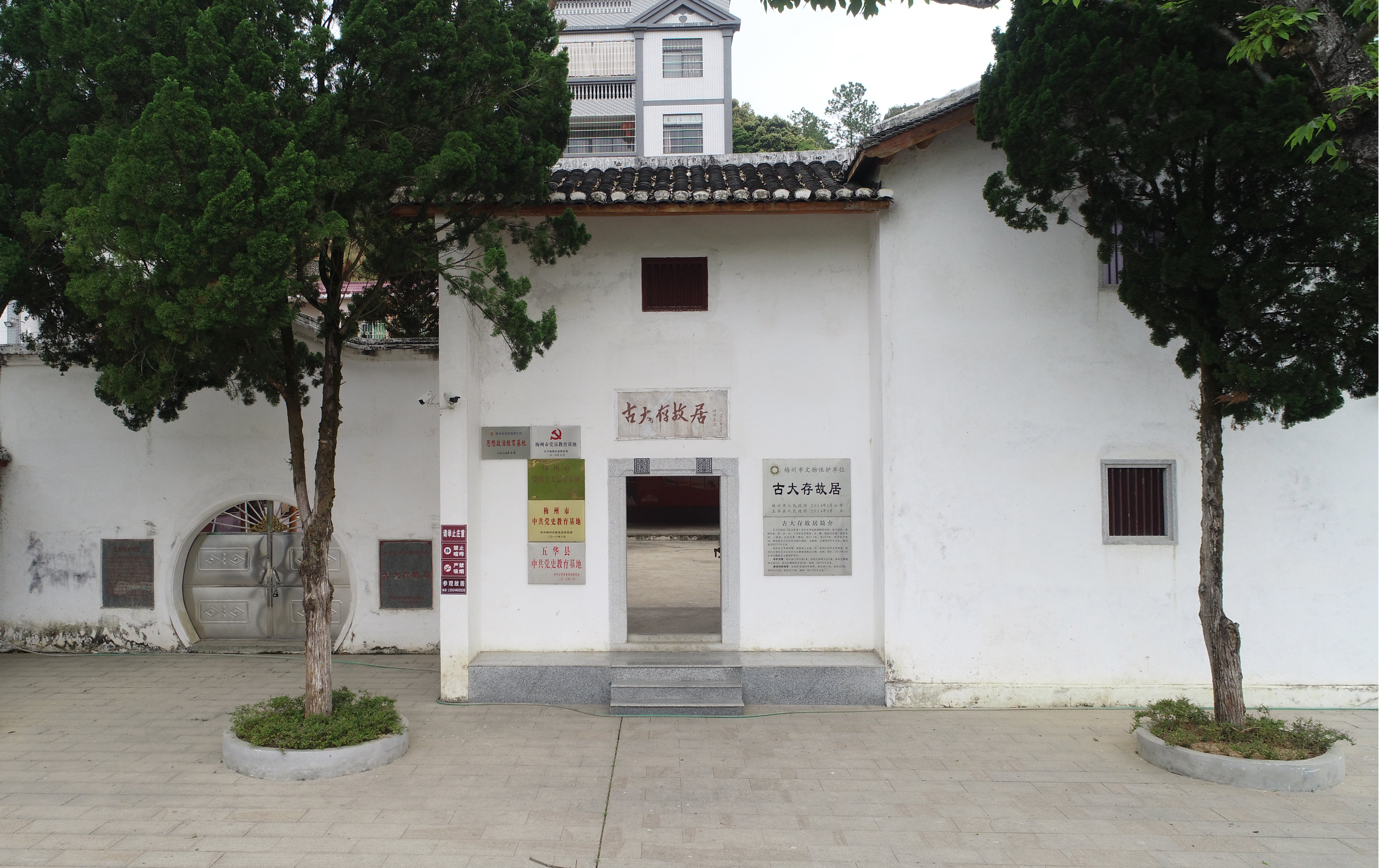 古大存故居,原名“金山翠秀”,位于廣東省梅州市五華縣梅林鎮(zhèn)優(yōu)行村優(yōu)徑村,建于清嘉慶年間,1989年修復(fù)。坐北向南,面寬30.6平方米,進(jìn)深21.4米,占地面積約655平方米。平面布局為一堂二橫廊,面寬五間,灰沙夯筑墻體,懸山頂建筑,古大存住的是左橫屋,面積約222平方米,故居曾被敵人燒過三次,至今存留斷壁殘墻,后經(jīng)政府多次撥款修復(fù)。古大存,1924年在廣州加入中國共產(chǎn)黨,是五華縣革命斗爭主要創(chuàng)始人,曾任中共五華縣委書記、東江蘇維埃政府副委員長、紅十一軍軍長兼代政委、廣東省人民政府副主席兼民政廳廳長、中共廣東省委書記處書記。古大存一家為革命勝利犧牲了10人,其中有妻子徐妙嬌、弟弟古永缽及侄兒侄媳。該故居是五華縣進(jìn)行革命傳統(tǒng)教育、愛國主義教育的重要場所。古大存故居對五華縣愛國主義教育具有重要意義。1984年公布為五華縣文物保護(hù)單位。2022年廣東省人民政府公布為省級文物保護(hù)單位。