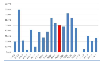 公路網(wǎng)結(jié)構(gòu)有待進一步優(yōu)化。普通國省干線總體等級偏低路況較差,新調(diào)整的省道有一半以上是原縣鄉(xiāng)公路,調(diào)整后的省道三四級公路比重高達50.1%,從全省排名來看排在第六位。同時由于路網(wǎng)規(guī)??偭看螅啾绕渌厥?,梅州市每減少1%低等級路都需要投入更多的資金。農(nóng)村公路受山區(qū)地形制約,改造提升條件差、造價高,鎮(zhèn)至建制村通雙車道任務(wù)推進困難。