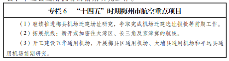 推動梅州機場遷建取得實質(zhì)性進展,加快推進機場遷建,深化梅州機場遷建場址研究,爭取完成機場遷建選址報批前期工作。
