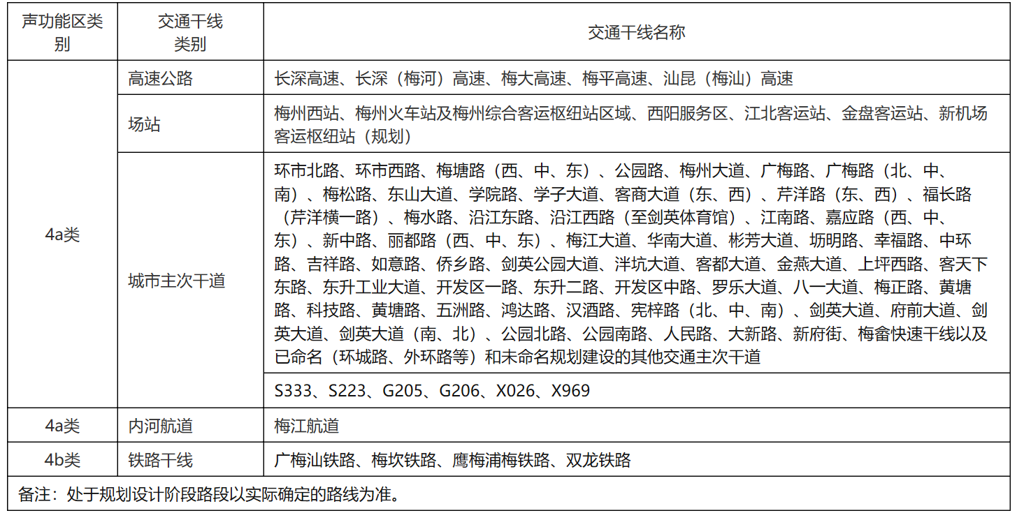 對(duì)機(jī)場(chǎng)、交通干線等重大項(xiàng)目建設(shè)導(dǎo)致區(qū)域用地性質(zhì)和聲環(huán)境質(zhì)量發(fā)生重大變化的,相關(guān)區(qū)域的聲環(huán)境功能區(qū)劃可按程序調(diào)整,報(bào)梅州市人民政府批準(zhǔn)后公布實(shí)施。