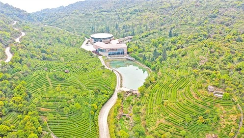 梅州市韓山歷史文化旅游區(qū)千畝生態(tài)茶園里,一排排茶樹錯落有致。(圖片來源:梅州日報 高訊 攝)