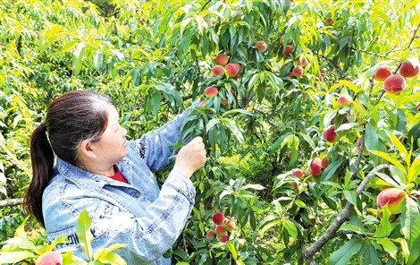 瑤東村水果種植基地的發(fā)展壯大不僅帶來了好收益,也為當?shù)卮迕駧砹嗽鍪罩赂坏暮瞄T路,有效解決了周邊村民的就業(yè)問題。“在基地工作工資按天結,一天能賺120元,我歲數(shù)大了,干不了重活,在基地掙點錢還能給家里減輕點負擔,離家近也方便?!闭谡易拥拇迕袢~女士笑呵呵地說道。(記者 吳麗伶)