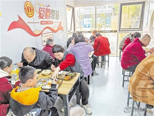 居民在梅江區(qū)江南街道中心壩社區(qū)鄰里餐廳就餐。(中心壩社區(qū)供圖)