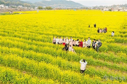 漫步在南口鎮(zhèn)僑鄉(xiāng)村,利用冬日閑置農(nóng)田種植的220余畝油菜花,在微風(fēng)中隨風(fēng)搖曳,與客家古民居構(gòu)成一幅美麗的田園風(fēng)光畫(huà)卷;而一旁的親子農(nóng)場(chǎng),記者看到偌大的游樂(lè)場(chǎng)地與農(nóng)田自然融為一體,孩子們?cè)谶@里盡情游玩?!盃N爛的油菜花海吸引游客前來(lái)賞花休閑,使‘春賞花’成為僑鄉(xiāng)村一張靚麗的生態(tài)名片,帶旺了村里的人氣和特色農(nóng)產(chǎn)品銷(xiāo)售?!眱S鄉(xiāng)村黨支部書(shū)記潘增明說(shuō)。