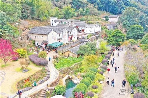 春節(jié)期間,游客在橋溪古韻景區(qū)游玩。(鐘小豐 攝)