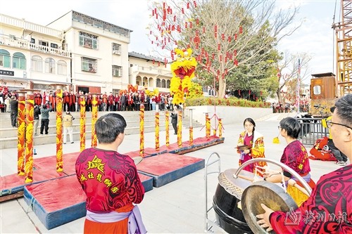 “請(qǐng)到中國(guó)·松口過(guò)大年”活動(dòng)現(xiàn)場(chǎng),醒獅表演增添喜慶氣氛。(連志城 攝)