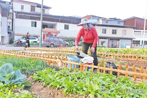 共享菜園綠意盎然,這里已成為凝聚民心的重要陣地。(江嬋 攝)