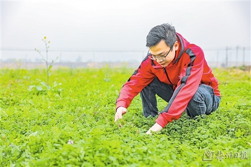 “最近氣溫低,紫云英生長(zhǎng)慢,等天氣暖和后一下子就躥上來(lái)了。”初春的蕉嶺縣新鋪鎮(zhèn)尖坑村下著蒙蒙細(xì)雨,900畝紫云英長(zhǎng)勢(shì)良好,陸續(xù)進(jìn)入花期。連日來(lái),農(nóng)技專家來(lái)到田間地頭,為當(dāng)?shù)剞r(nóng)戶講解紫云英等綠肥的種植技術(shù)。