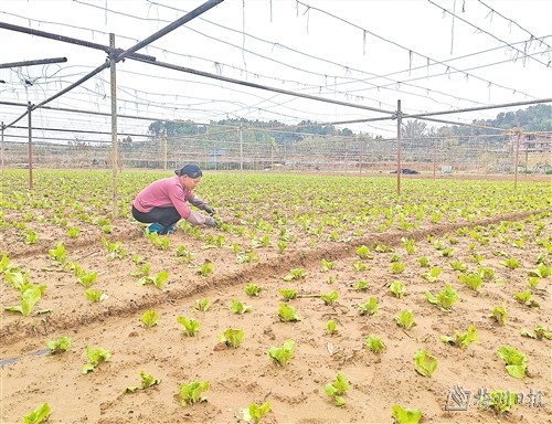 在轉(zhuǎn)水鎮(zhèn)五星村,梅州市延豐農(nóng)業(yè)科技有限公司組織員工搶抓當前有利時機,有序分工在田間地頭、溫室大棚進行犁地、下秧、種菜等作業(yè),為種植基地全年增產(chǎn)增收開好局起好步。走進該公司蔬菜種植基地,只見溫室大棚內(nèi)春意盎然、生機勃勃,工人們正精心培育各類蔬菜苗,為今年蔬菜產(chǎn)業(yè)發(fā)展作準備。田地里,工人們有的整地、拉膜,有的忙著起壟、種菜、除草,各項工作井然有序?!盎孛娣e有300多畝,產(chǎn)品主要供往學校及周邊批發(fā)市場,擁有較全的蔬菜品類和較大的產(chǎn)量。”該基地負責人唐永貴介紹說,基地在發(fā)展的同時,也有力有效帶動周邊村民就業(yè),目前基地平均每天需要用工40多人。