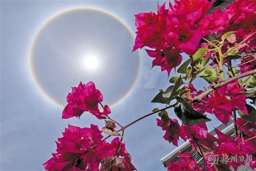 氣象專(zhuān)家提醒,日暈雖美,但光線(xiàn)明亮,市民欣賞這一奇觀時(shí)需避免長(zhǎng)時(shí)間用肉眼觀看,以免灼傷眼睛。(記者 李艷良)