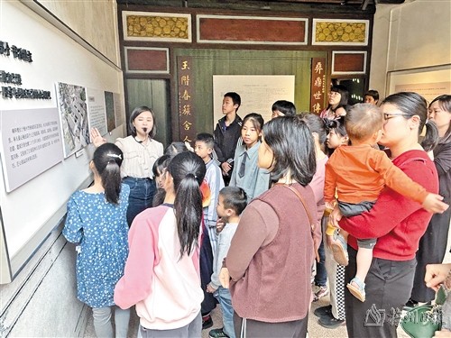 講解員為參加活動(dòng)的親子家庭講解梁伯聰家族事跡。(梅江區(qū)婦聯(lián)供圖)