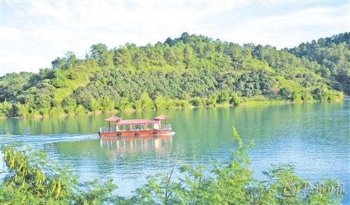 在五華益塘水庫可乘船游覽、欣賞湖光山色,還可以體驗(yàn)荔枝采摘樂趣。