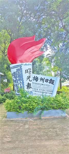 初入曙光公園,印著《曙光報(bào)》與《梅州日?qǐng)?bào)》字樣的主題雕塑映入眼簾,它高高矗立,如同一柄火炬,照亮了那段波瀾壯闊的革命歲月。沿著蜿蜒的石階前行,路邊綠樹成蔭。黨報(bào)展現(xiàn)是曙光公園里最亮眼的一道景觀。煤油燈下,八仙桌前,刻字、拼版、印刷,三尊解放戰(zhàn)爭時(shí)期“報(bào)人”銅雕栩栩如生,道出了一段紅色往事:1948年夏秋至次年春,梅興平邊縣委在長田石角村出版早期機(jī)關(guān)報(bào)《曙光報(bào)》,及時(shí)宣傳黨的政策,團(tuán)結(jié)了蘇區(qū)百姓。駐足在展現(xiàn)墻前,仿佛能看到當(dāng)年的報(bào)人們在艱苦的環(huán)境下,堅(jiān)守信念,為了傳播革命思想而日夜忙碌的身影。風(fēng)雨百年路,邁進(jìn)新時(shí)代,時(shí)至今日,《曙光報(bào)》這段艱苦卓絕的辦報(bào)歷史,與《梅州日?qǐng)?bào)》慶祝建黨百年特刊在文化墻上接續(xù)展現(xiàn),濃縮歷史,撫今追昔,振奮人心。