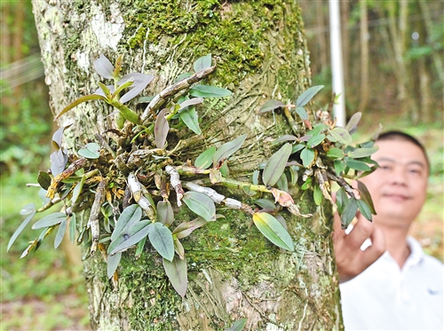 走進(jìn)八尺鎮(zhèn)茂密的松林深處,一叢叢青翠欲滴的鐵皮石斛根須緊抱樹干,生機(jī)盎然。梅州綠盛林業(yè)科技有限公司負(fù)責(zé)人姚強(qiáng)輕撫著這些被稱為“林下仙草”的珍稀藥材介紹道:“石斛天性喜附生,我們精準(zhǔn)模擬其野生環(huán)境,讓它們在闊葉樹上自然生長,這樣產(chǎn)出的石斛品質(zhì)更接近野生狀態(tài)。雖然仿野生種植周期較長,但其藥用價值更高,深受市場青睞?!?/p>