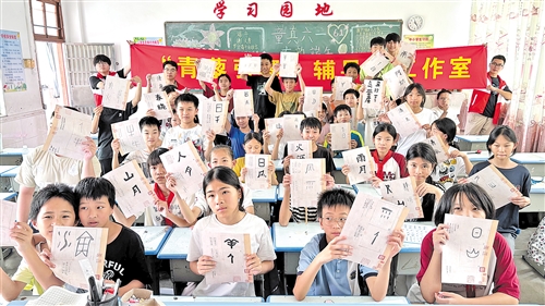 文學(xué)院“詩墨流光·智鏈非遺”社會實(shí)踐志愿服務(wù)隊(duì)走進(jìn)豐順縣潭江中心小學(xué),為六年級學(xué)生精心設(shè)計特色文化課程?!奥晞釉娦?唱出詩意”古詩課引導(dǎo)學(xué)生吟唱經(jīng)典、創(chuàng)作新歌,感受詩歌韻律;“探秘豐順非遺”課堂圖文并茂展示埔寨火龍、留隍云片糕等各級非遺項(xiàng)目,聚焦省級非遺埔寨紙花,講述其自清乾隆以來的傳承故事,并指導(dǎo)學(xué)生動手體驗(yàn)制作技法;書法課堂帶領(lǐng)學(xué)生追溯漢字演變,體驗(yàn)文房四寶特性,在臨摹與創(chuàng)作中感悟漢字文化底蘊(yùn)。志愿者們以詩詞、非遺、書法為橋,在少年心中播撒下文化自信的種子。
