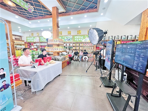 主播向觀眾展示特色農(nóng)產(chǎn)品。(王銳 攝)