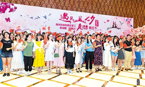 昨日,梅州市單身青年職工聯(lián)誼暨“淘偶會(huì)”走進(jìn)客天下迎七夕活動(dòng)在梅城客天下旅游產(chǎn)業(yè)園舉行。來(lái)自全市各級(jí)機(jī)關(guān)、國(guó)有企事業(yè)單位和中央、省屬駐梅單位的200多名單身青年職工參加活動(dòng)。