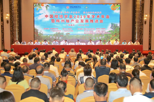 中國(guó)柑桔學(xué)會(huì)2019年學(xué)術(shù)年會(huì)暨梅州柚產(chǎn)業(yè)發(fā)展推進(jìn)會(huì)召開。(圖片來(lái)源:梅州日?qǐng)?bào),首席記者高訊 攝)
