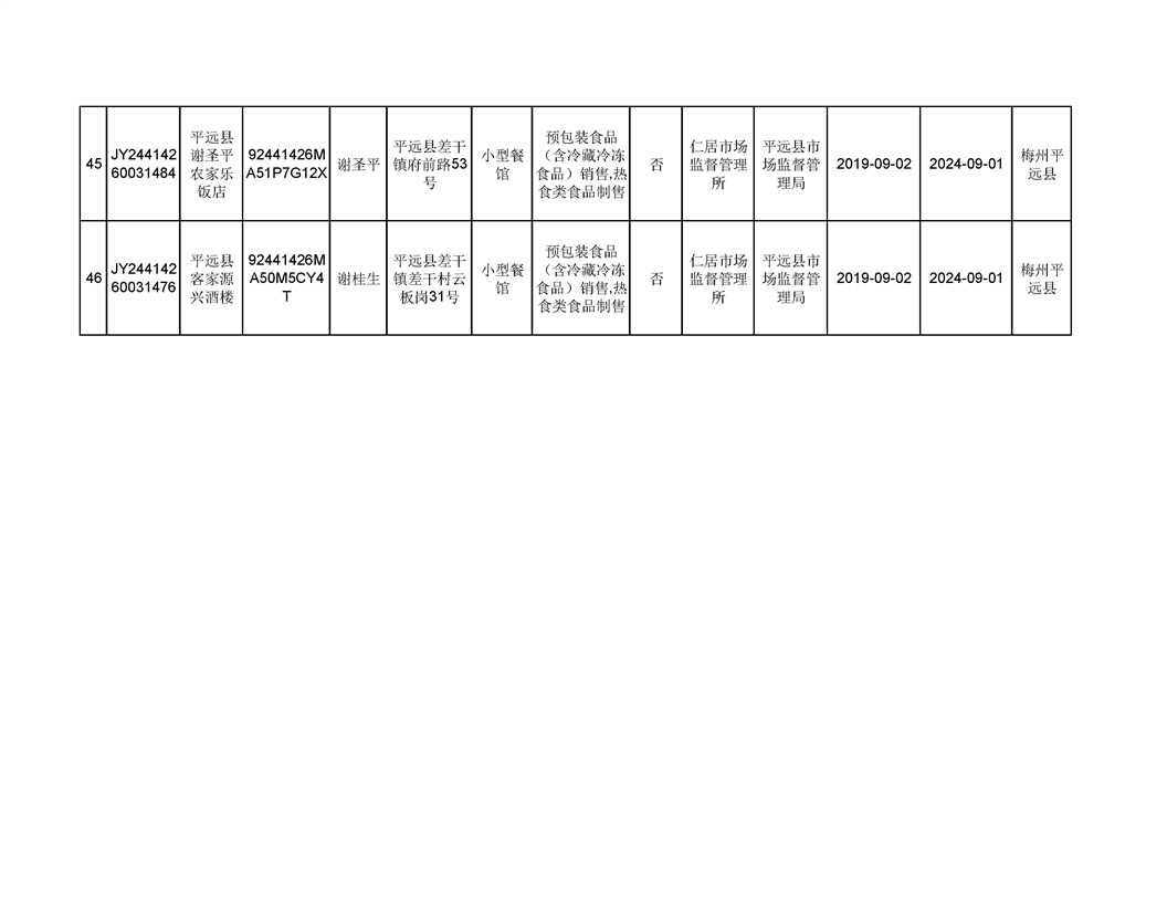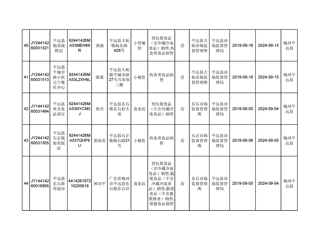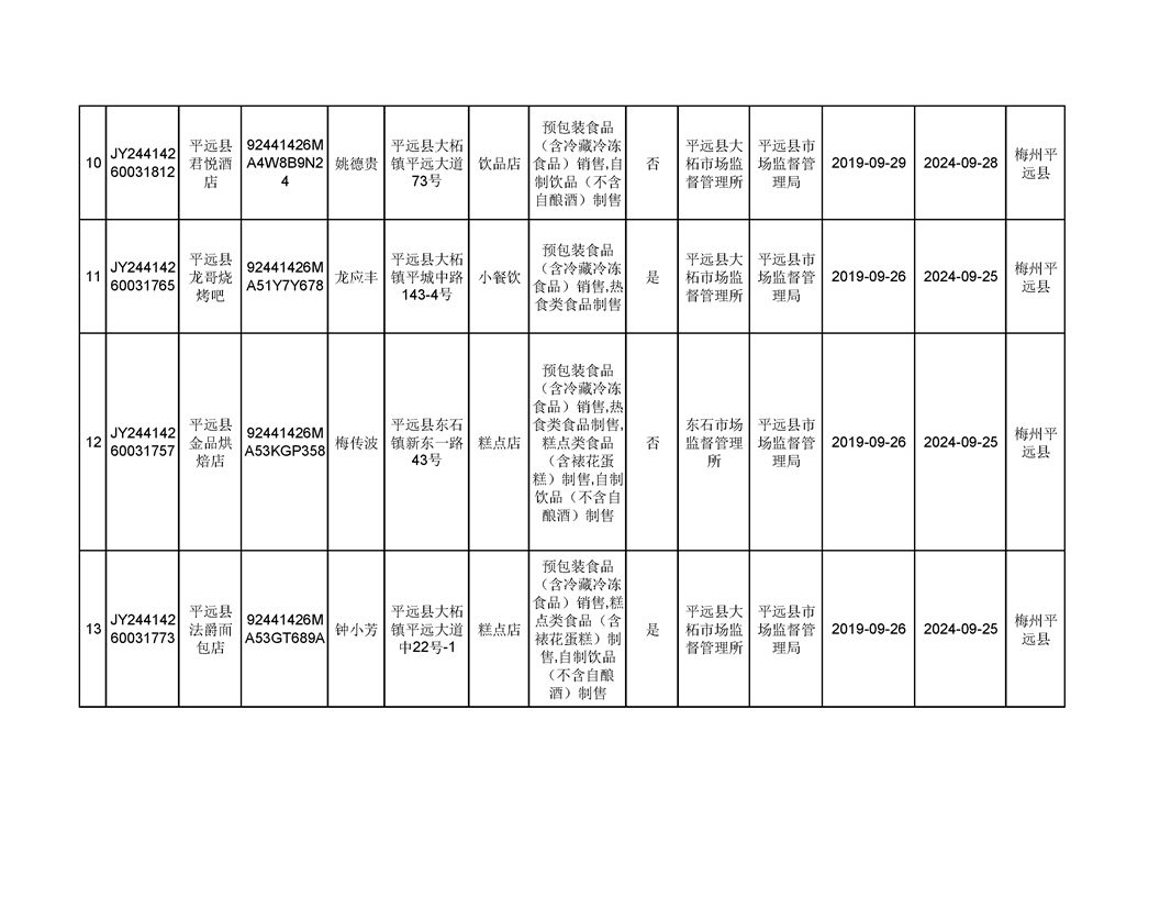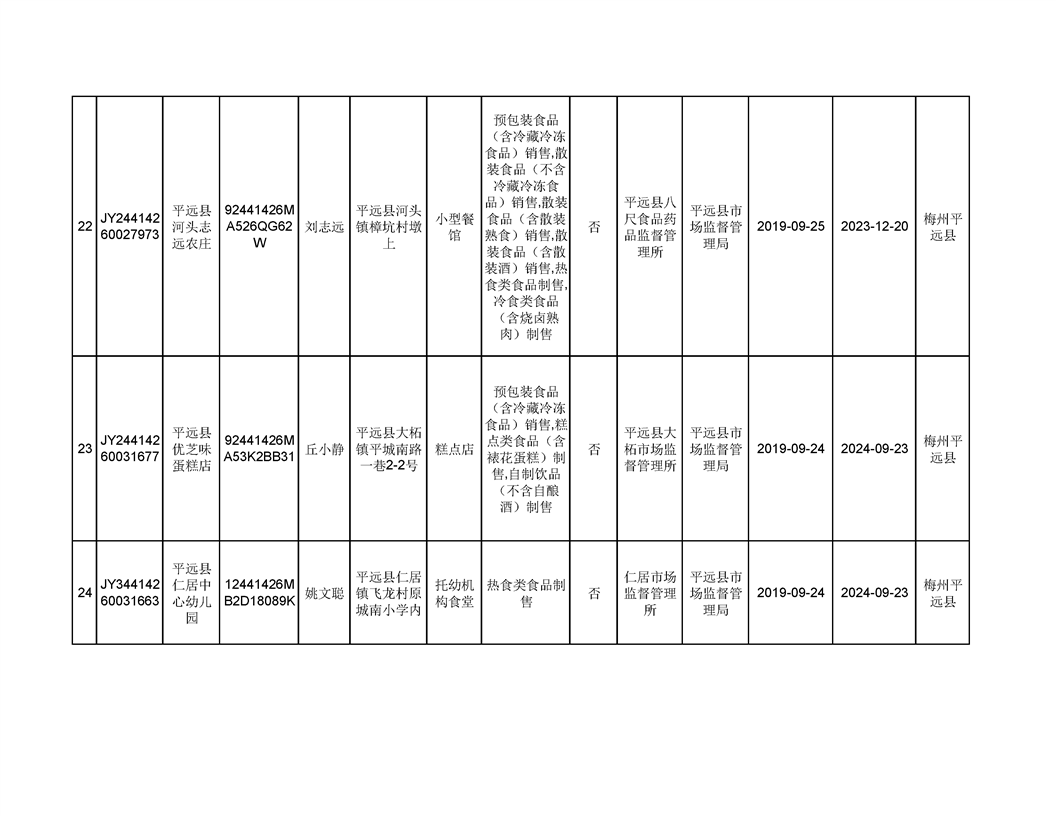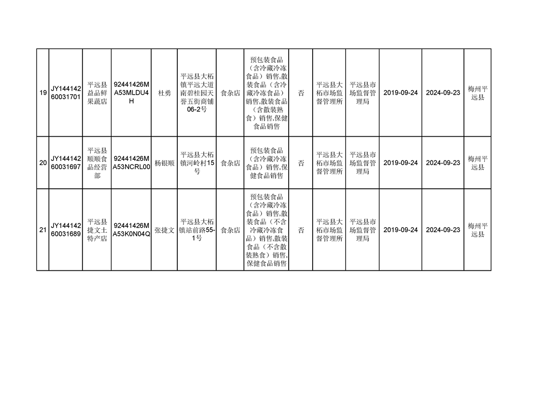 平遠縣2019年9月份食品經(jīng)營企業(yè)《食品經(jīng)營許可證》換發(fā)證公告