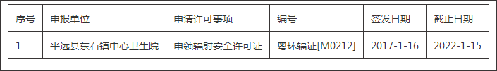 梅州市環(huán)境保護局2017年1月16日輻射安全許可證審批結(jié)果公示