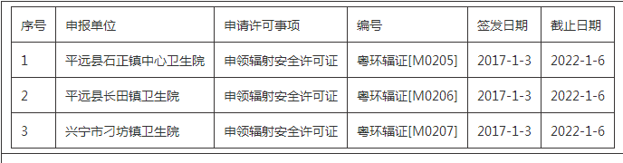 梅州市環(huán)境保護(hù)局2017年1月3日輻射安全許可證審批結(jié)果公示