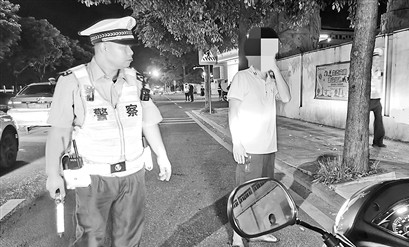 當看見執(zhí)勤人員在前方整治時,有的駕駛員便趕緊切換燈光,而有的駕駛員則一直開著遠光燈,執(zhí)勤人員立即示意其靠邊停下。