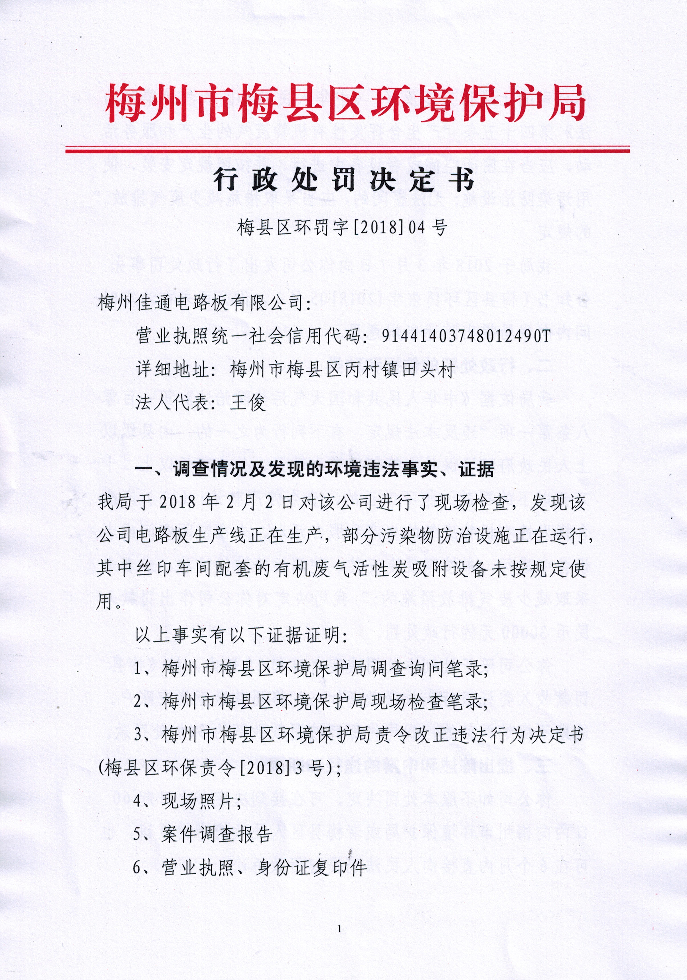梅縣區(qū)環(huán)罰字[2018]04號(hào)