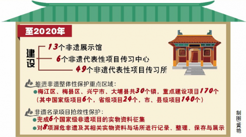 《計劃》還提出,要加快非遺數(shù)據(jù)庫、非遺保護項目信息管理系統(tǒng)、數(shù)字博物館、梅州保護區(qū)對外網(wǎng)站等數(shù)字化建設。