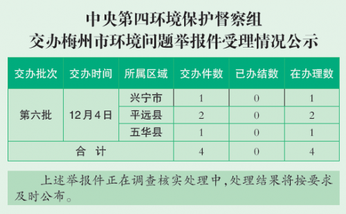 中央第四環(huán)保督察組向各地市已轉(zhuǎn)辦了六批環(huán)境信訪舉報件,我市接到交辦案件共有20宗,其中3宗投訴件內(nèi)容相同。我市高度重視,即時將舉報件轉(zhuǎn)至相關(guān)職能部門、縣(市、區(qū))人民政府辦理,要求限期反饋相關(guān)處理情況?,F(xiàn)將部分舉報件核實查處情況向社會通報。
