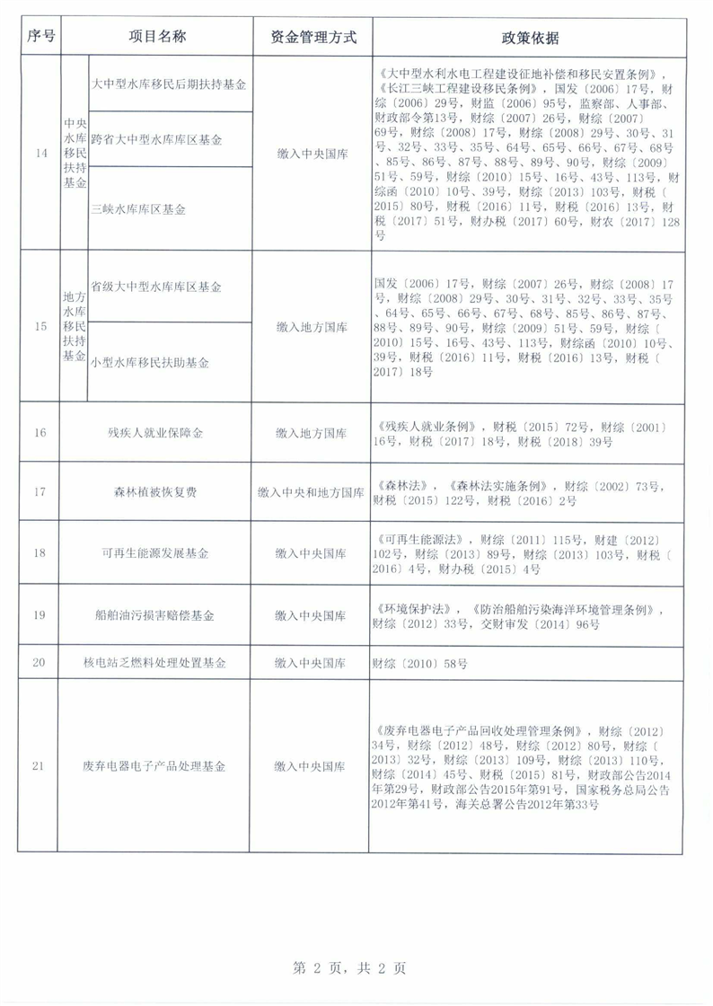 全國(guó)政府性基金目錄清單(2019年10月更新)