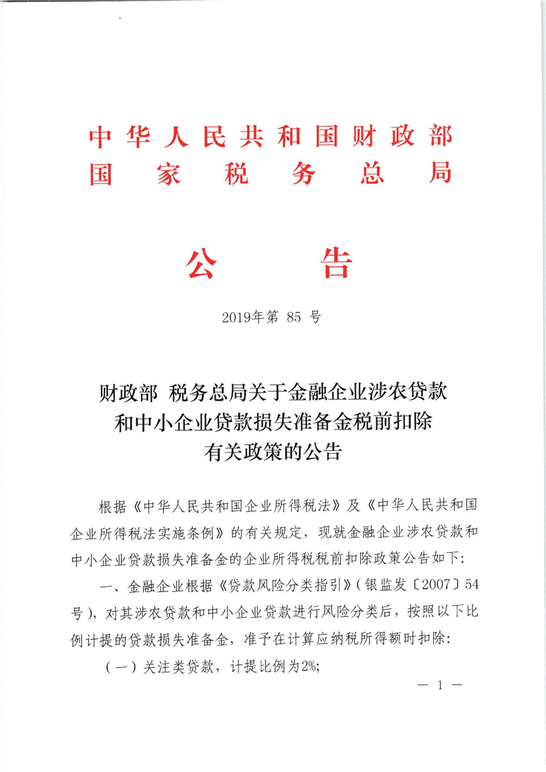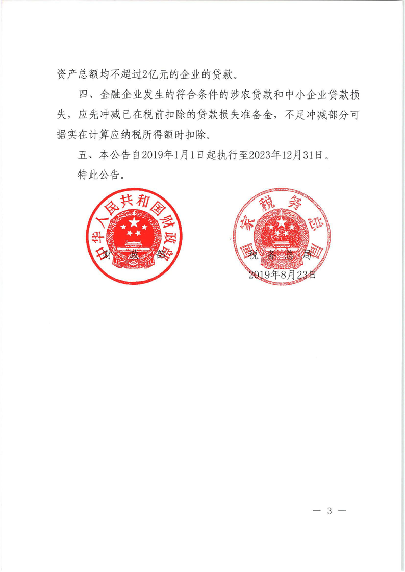 財(cái)政部 稅務(wù)總局關(guān)于金融企業(yè)涉農(nóng)貸款和中小企業(yè)貸款損失準(zhǔn)備金稅前扣除有關(guān)政策的公告