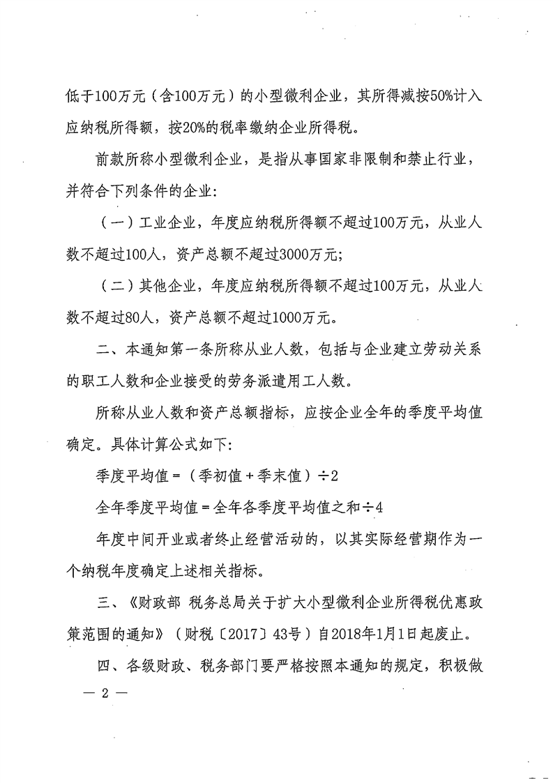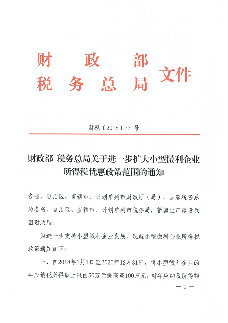 財政部 稅務(wù)總局關(guān)于進一步擴大小型微利企業(yè)所得稅優(yōu)惠政策范圍的通知