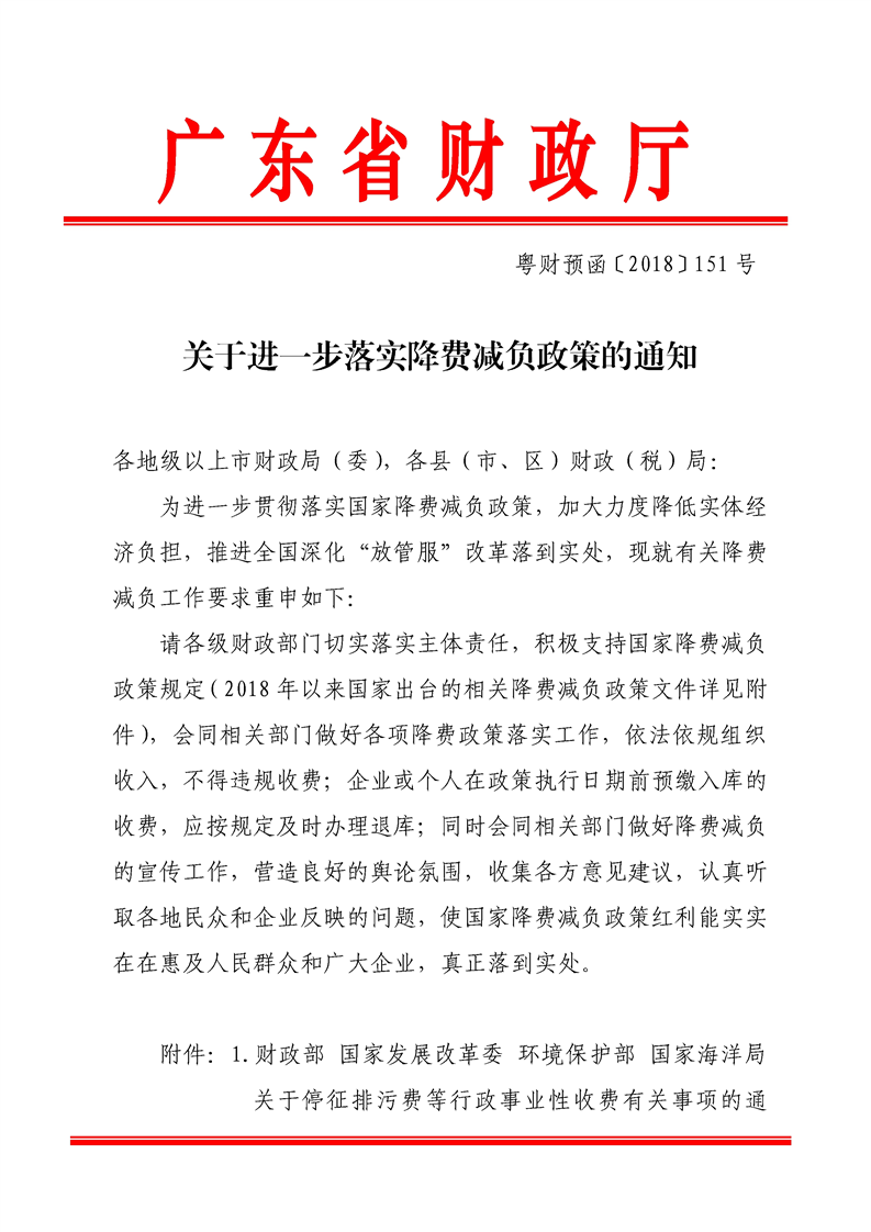 關(guān)于進一步落實降費減負政策的通知