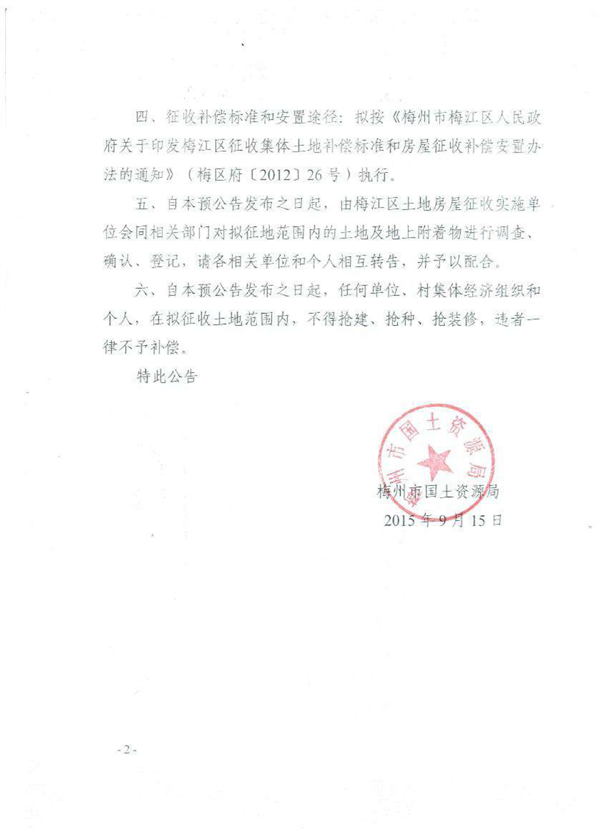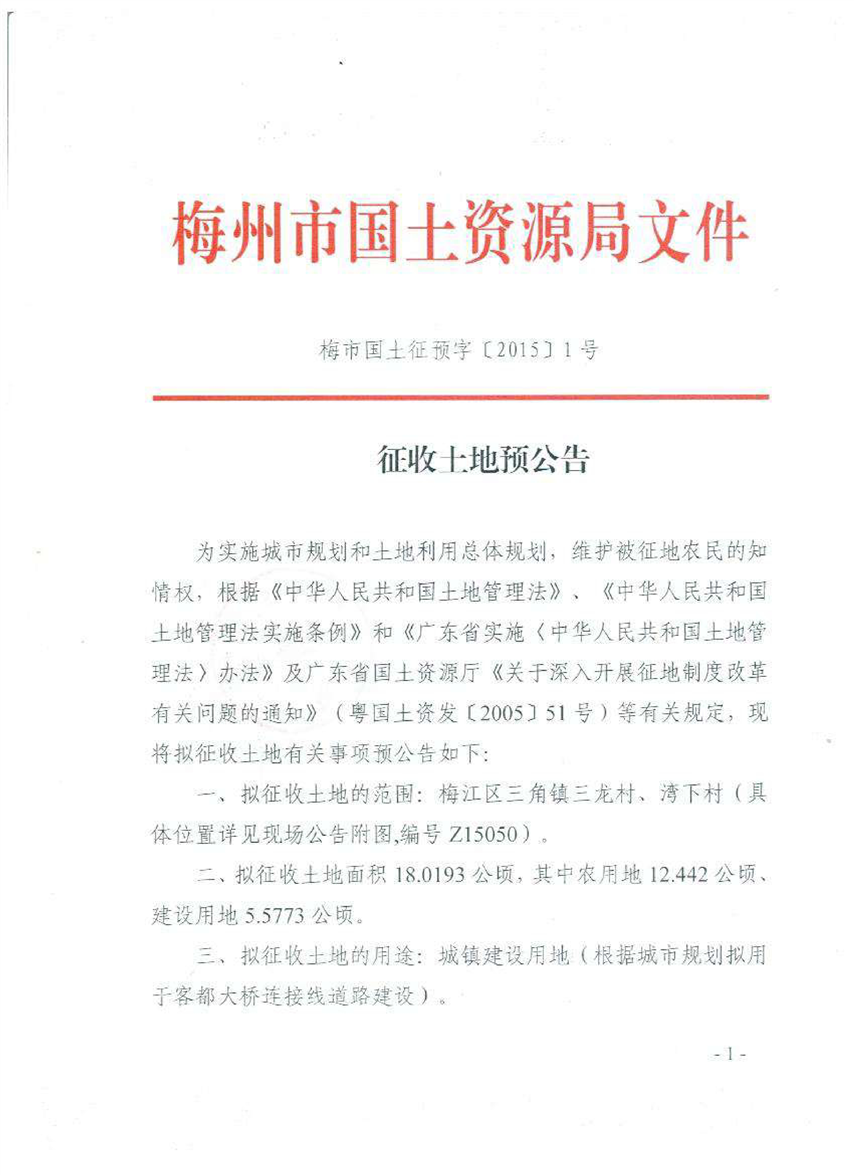 征收土地預(yù)公告(梅江區(qū)三角鎮(zhèn))