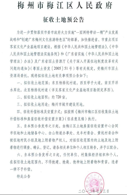 客產(chǎn)園征地預(yù)公告