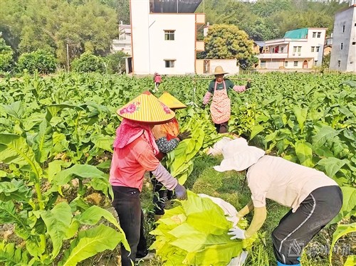 近期,五華縣華城鎮(zhèn)百畝煙田綠浪翻涌。昔日沉寂的撂荒地,如今經(jīng)過全域土地綜合整治煥發(fā)新生,田間地頭到處都是農(nóng)戶采摘煙葉的忙碌身影,煙農(nóng)們在烘烤處選葉、編桿、上炕,一派“趕烤”景象。