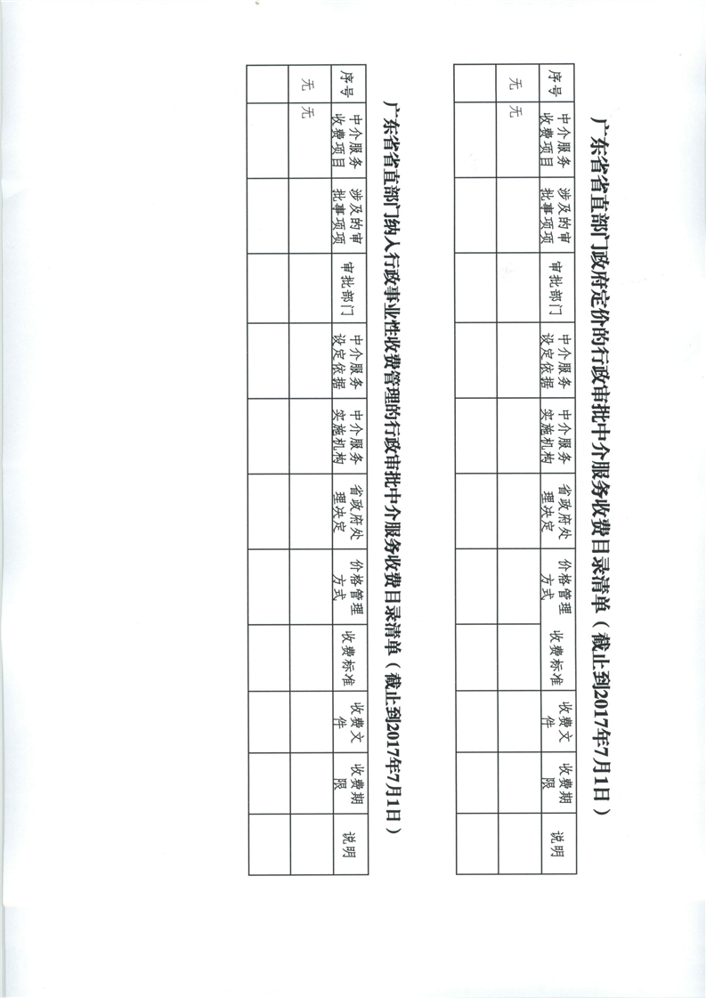 廣東省省直部門(mén)政府定價(jià)的行政審批中介服務(wù)收費(fèi)目錄清單(2017.07.01)