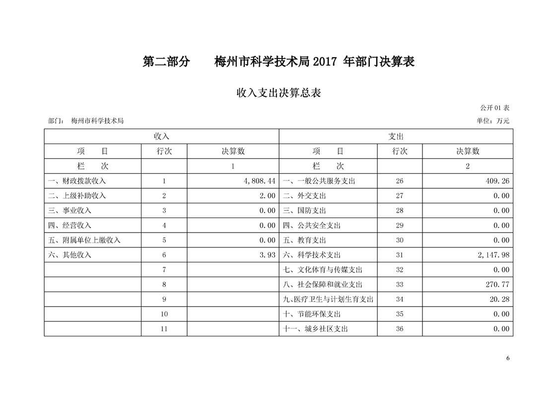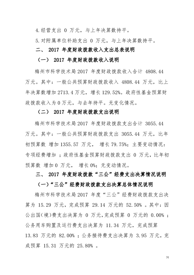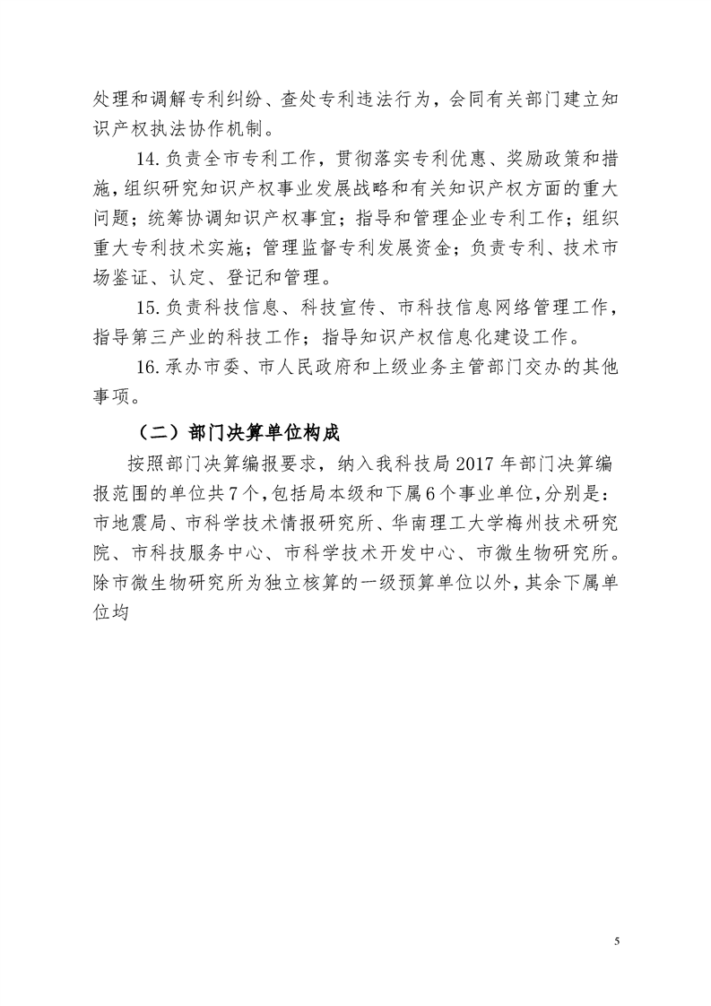 梅州市科學(xué)技術(shù)局2017年部門(匯總)決算公開