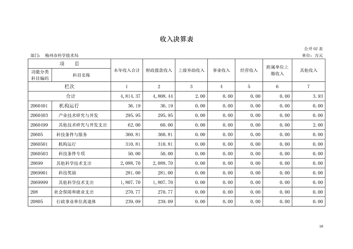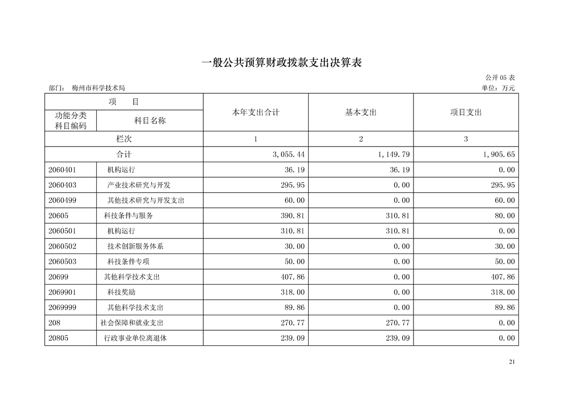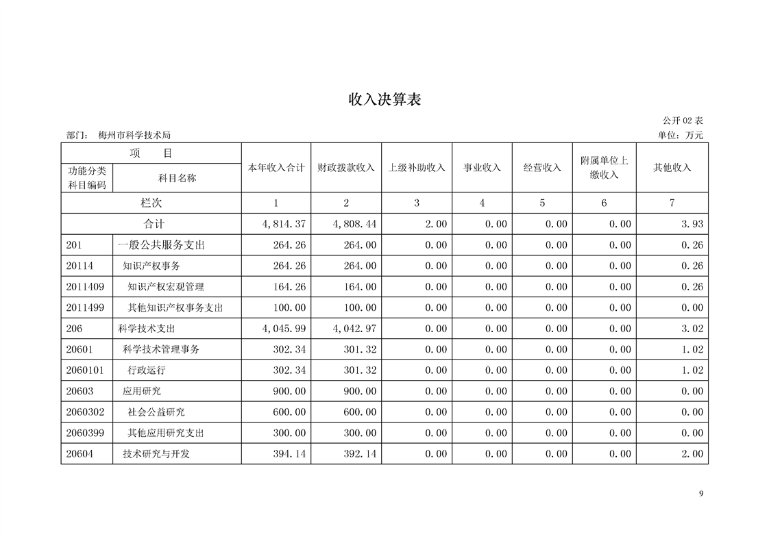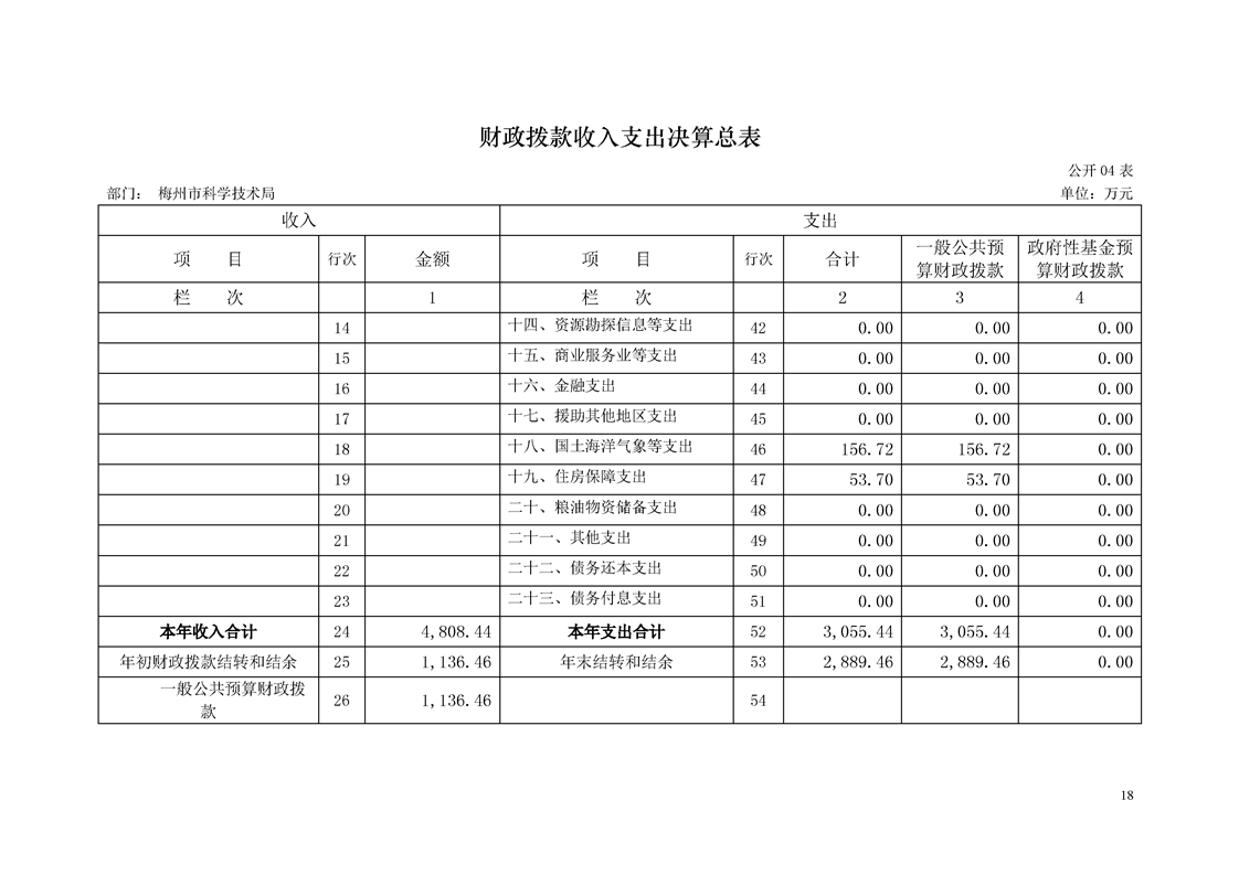 梅州市科學(xué)技術(shù)局2017年部門(匯總)決算公開