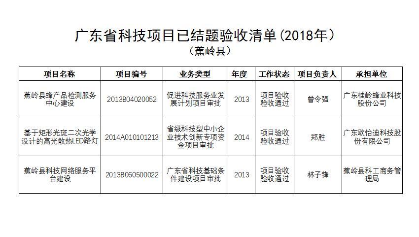 廣東省科技項目已結(jié)題驗收清單(2018年)
