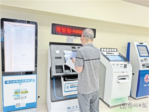 市民在市行政服務(wù)中心使用“粵智助”。(林儀 攝)