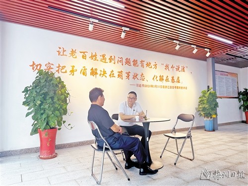 “庭院接訪”模式消除了傳統(tǒng)窗口式接訪的隔離感,拉近了工作人員與群眾之間的距離。(張瑩娜 攝)