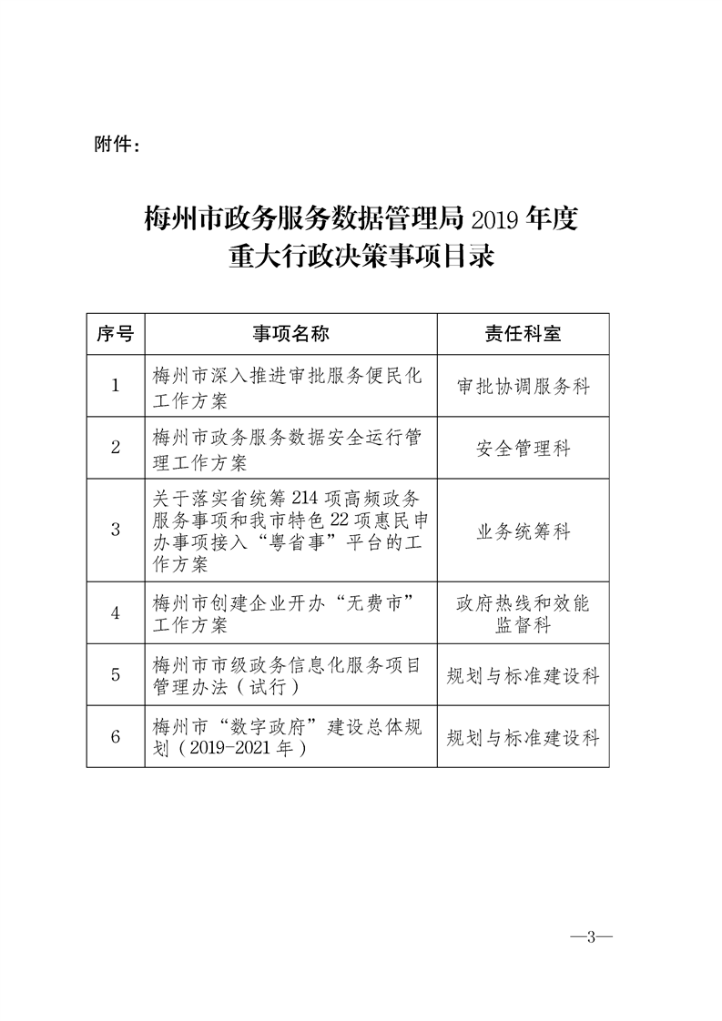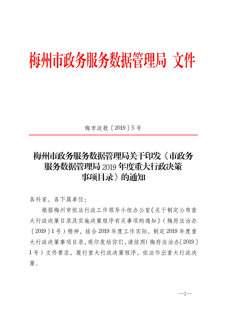 關(guān)于印發(fā)《梅州市政務(wù)服務(wù)數(shù)據(jù)管理局2019年度重大行政決策事項(xiàng)目錄》的通知