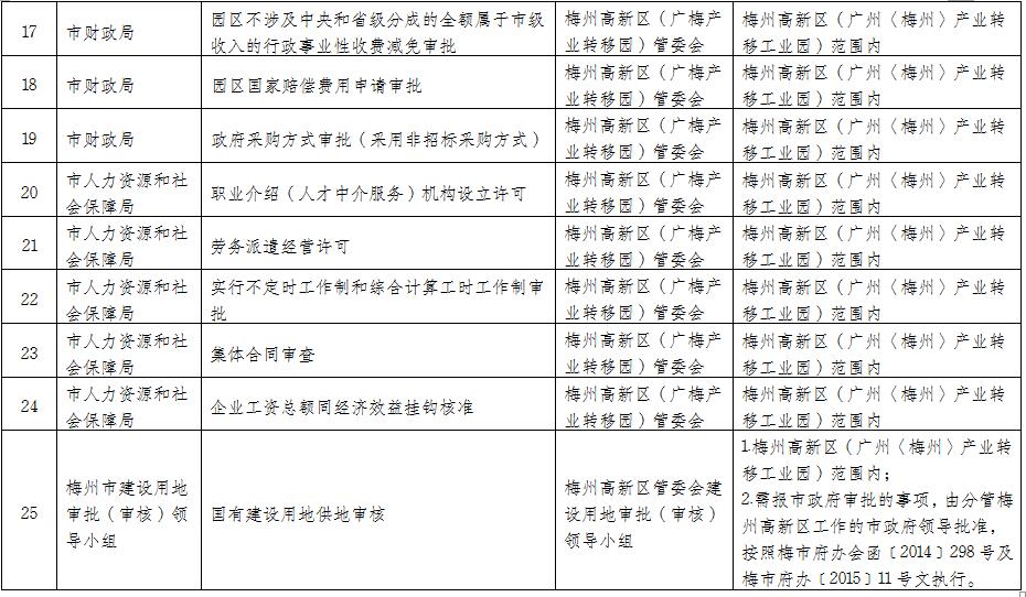 政府相關(guān)職能部門委托梅州高新區(qū)
