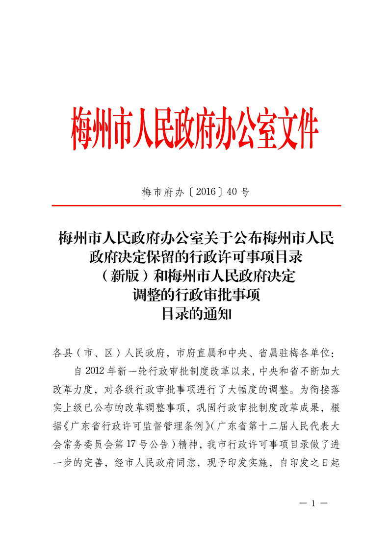 《梅州市人民政府辦公室關(guān)于公布梅州市人民政府決定保留的行政許可事項(xiàng)目錄(新版)和梅州市人民政府決定調(diào)整的行政審批事項(xiàng)目錄的通知》