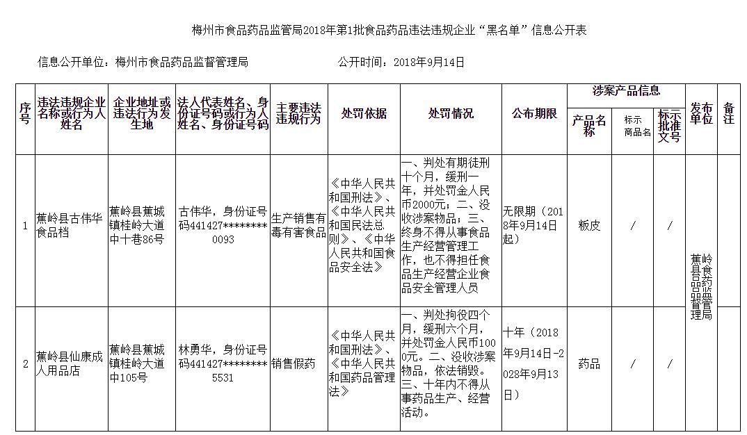 2018年第1批食品藥品違法違規(guī)企業(yè)“黑名單”