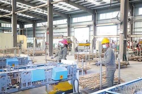 抓產(chǎn)業(yè)就是抓發(fā)展,謀項(xiàng)目就是謀未來(lái)。在廣東健態(tài)實(shí)業(yè)有限公司,一邊是熱火朝天的生產(chǎn)景象:貨車忙著卸載一批批毛竹,工人們將竹料斷料、開(kāi)片、篩選,加工成竹片、竹炭等產(chǎn)品,全力趕訂單、忙生產(chǎn);一邊是緊張忙碌的項(xiàng)目施工場(chǎng)景:吊車正在進(jìn)行廠房鋼結(jié)構(gòu)的主梁吊裝作業(yè),工人們一手拿著焊槍,一手拿著防護(hù)面罩,對(duì)著鋼板焊縫進(jìn)行焊接,此起彼伏的電焊聲“呲呲”作響……